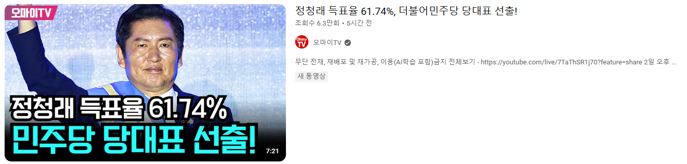 | 민주당 당대표 선출 | 2025년 8월 당대표 당선, 득표율 61.74% | 권리당원 중심 정치 구조 강조, 강력 개혁 의지 확인됨 |